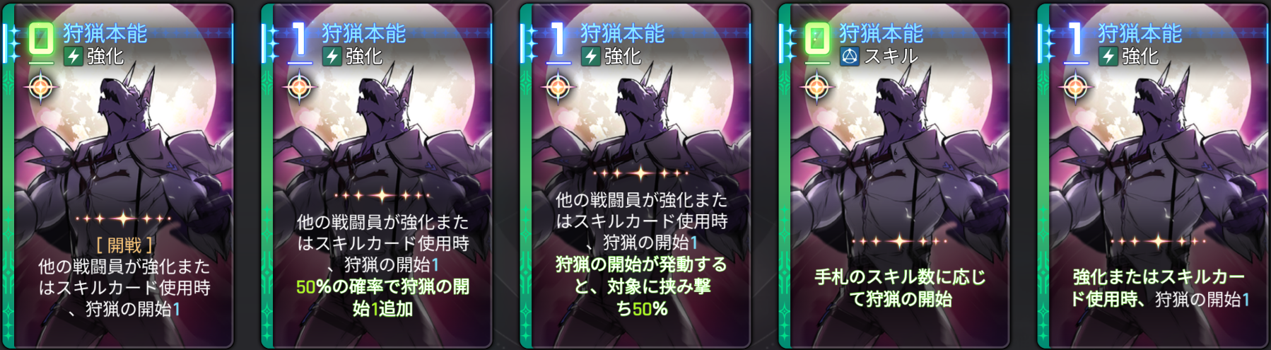 | 1 | 強化 | [開戦5)]ほかの戦闘員が強化またはスキルカード使用時、狩猟の開始1 |