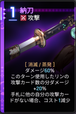 | 2凸 | リンが黒雲態勢状態になった場合、納刀カードを1枚生成します。この効果は毎ターン1回発動します。 |