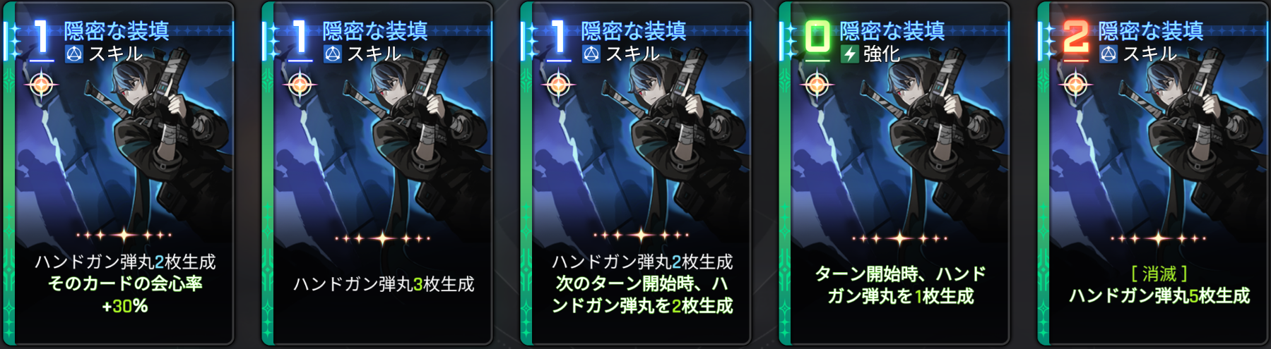 『連続撃発』に始まり、攻撃カードとハンドガン弾丸のカード倍率が軒並み低い。