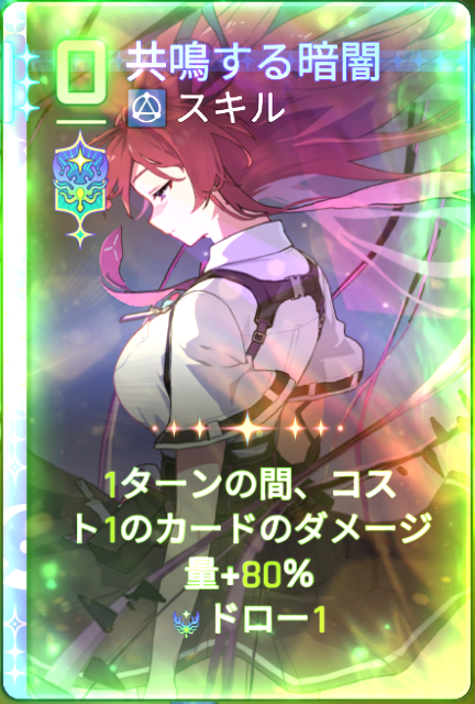 | 0 | スキル | 1ターンの間、コスト1のカードのダメージ量+80% |