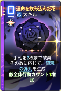 | 0 | スキル | 手札を2枚まで破棄 その数に応じて、鎮魂の弾丸を生成 敵全体行動カウント1増加 |
