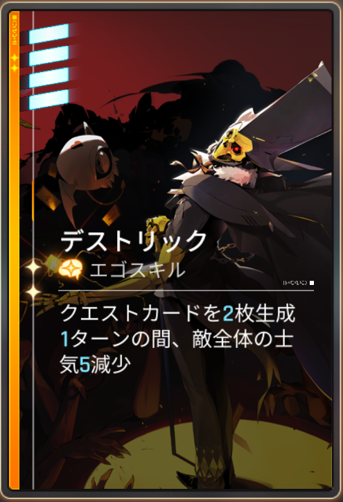 デストリック 4 クエストカードを2枚生成、1ターンの間、敵全体の士気3減少