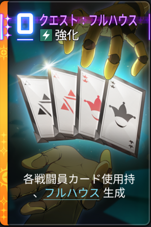 クエスト:フルハウス 0 スキル 各戦闘員カード使用時、フルハウス 生成