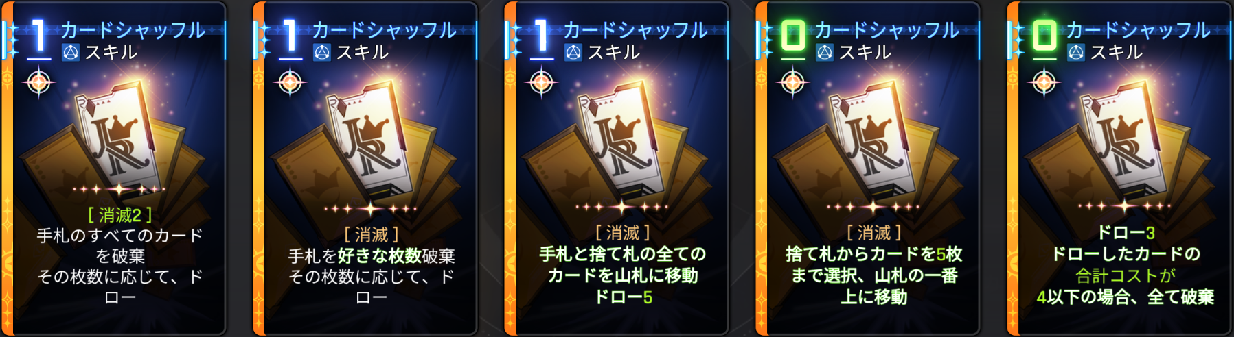 カードシャッフル 0 スキル 捨て札からカードを5枚まで選択、山札の一番上に移動