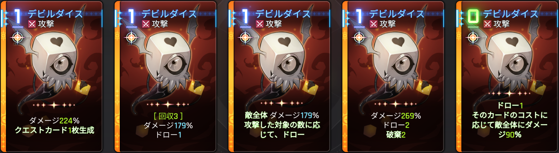 デビルダイス 0 攻撃 ドロー1。そのカードのコストに応じて敵全体にダメージ80%