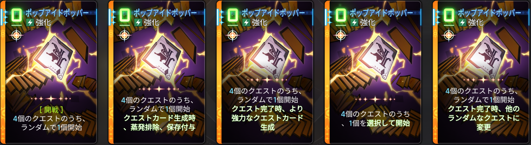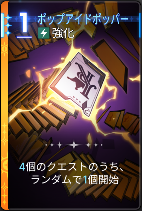 ポップアイドポッパー 1 強化 4個のクエストのうち、1個を選択して開始