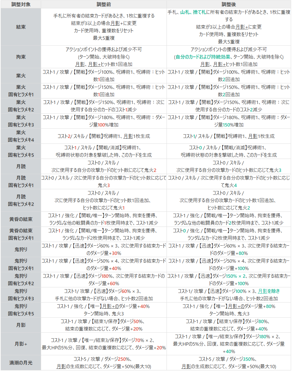 ツクヨミは正直どれでも変わらん気がしたけど、個人的には月影のヒット数増える奴か鬼火3のどっちかかな、多分どっちかが取れればデッキの形はそこまで変わらないと思う