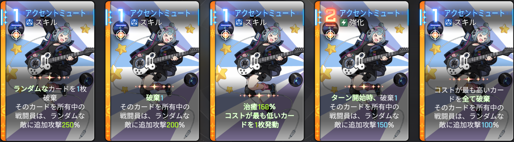 | 2 | 強化 | カードの破棄時、デシベル1 |