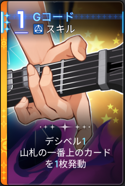 | 1 | スキル | デシベル5)1。山札の一番上のカードを1枚発動 |