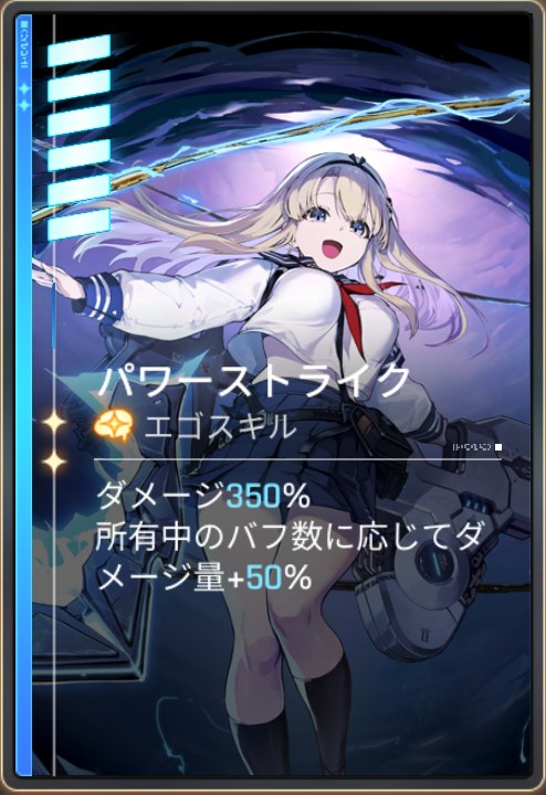 | 3凸 | パワーストライクのダメージ量が+100%になり、保有バフ数に応じてダメージ量増加効果が+20%になります |
