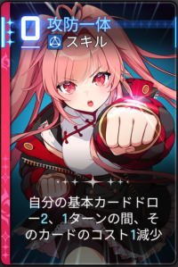0 スキル 自分の基本カードドロー2、1ターンの間、そのカードのコスト1減少 ダメージ減少1