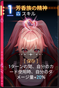 1 スキル [保存]1ターンの間、自分のカード使用時、自分のダメージ量+30%