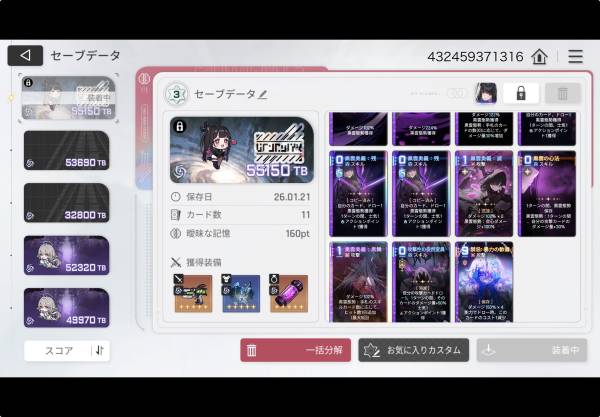 また、4凸すれば黒雲態勢は残で取得せずとも勝手に獲得できるので、そこまで凸が進んだなら、やっぱり滅と黒舞をもってきて殴りまくったほうがいいのかなぁとも…。