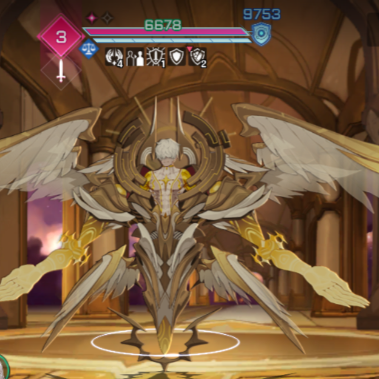 共用カードでジューダスの行動カウントを伸ばしたり、そもそもカードを切らなくても強い編成で挑んだり、そしてこの「即決断罪」スタックは「即決神の規律」というジューダスの持つギミックで増えていっているが、大破時にこのギミックがそのターン中のみ無効になるのでセレニエルなどでギミックを壊して戦うのがおすすめ。